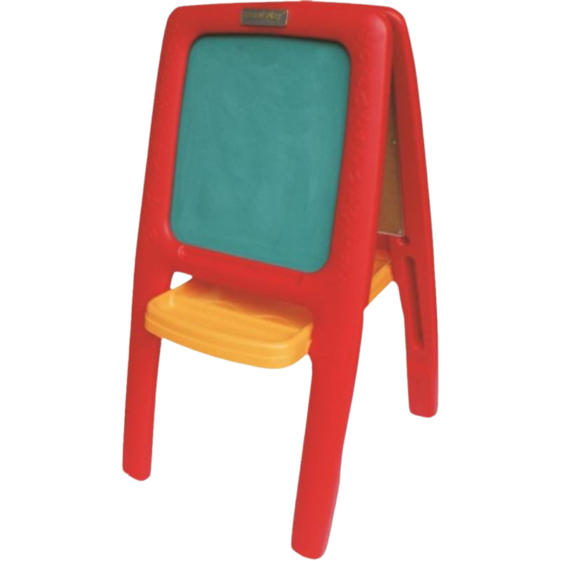 Brinquedo educativo e divertido,desperta na criança o interesse pela escrita e desenvolve a linguagem e o raciocínio lógico. Cavalete formado por um lado com lousa para giz e outro lado com quadro branco com superfície extremamente lisa para pincel marcador, bandeja com compartimentos para deixar giz, apagador, etc a qual também limita a abertura do cavalete. Ideal para crianças em processo de aprendizagem. Em conformidade com a norma NM 300/2002 Certificado pelo INMETRO Alt: 1.03 m Comp: 65 cm Larg: 54 cm