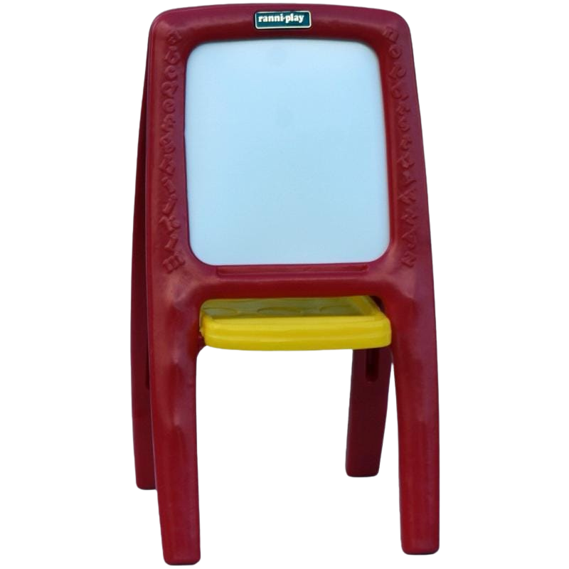 Brinquedo educativo e divertido,desperta na criança o interesse pela escrita e desenvolve a linguagem e o raciocínio lógico. Cavalete formado por um lado com lousa para giz e outro lado com quadro branco com superfície extremamente lisa para pincel marcador, bandeja com compartimentos para deixar giz, apagador, etc a qual também limita a abertura do cavalete. Ideal para crianças em processo de aprendizagem. Em conformidade com a norma NM 300/2002 Certificado pelo INMETRO Alt: 1.03 m Comp: 65 cm Larg: 54 cm